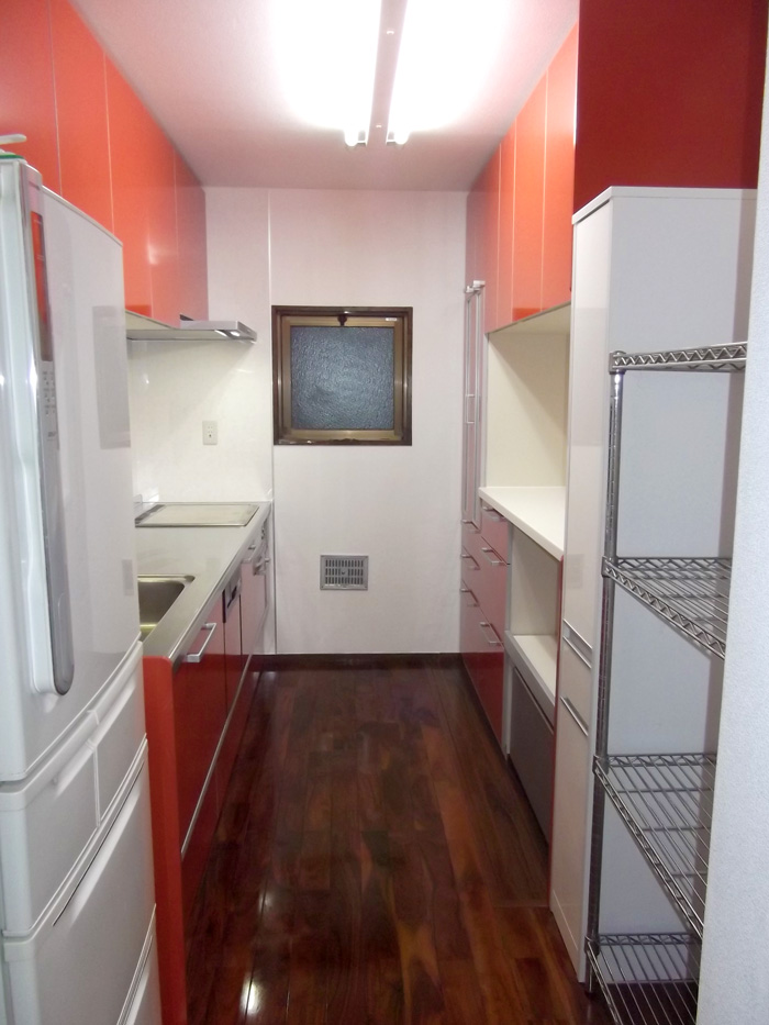 白色だったキッチンを赤くする事で、存在感のあるキッチンの誕生です。 開き戸から引出しタイプになって、収納力がアップしました。 掃除のしにくかった換気扇もグッとお手入れしやすくなり、毎日台所に立つのが楽しみになったはずです。
