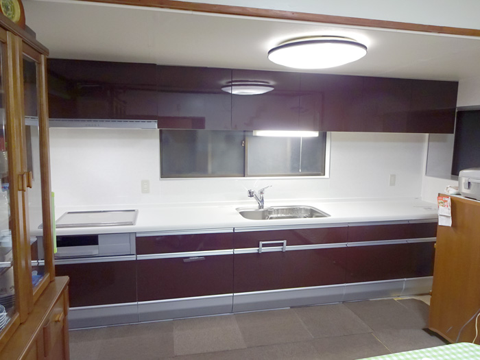 幅が3.7メートルといった大きいサイズのキッチンになっておりますので、天板は人工大理石をつなぎ合わせることで設置を実現いたしました。